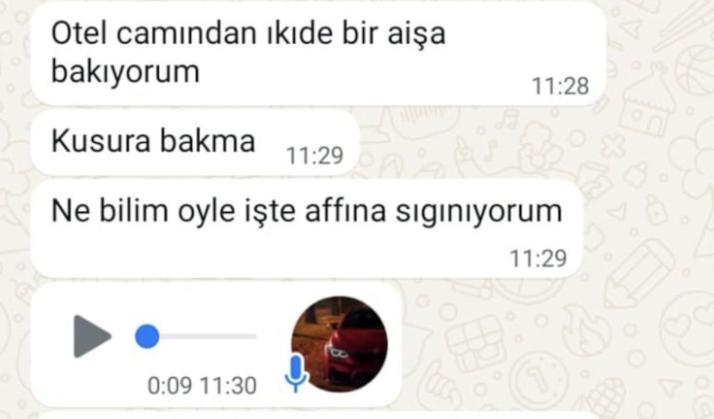 Öte yandan Serkan T., gönderdiği bir sesli mesajında genç kadına, ‘İstersen Suriye'ye git, o askerleri, telleri geçer yine gelirim, sana güveniyorum' demesi pes dedirtti.
