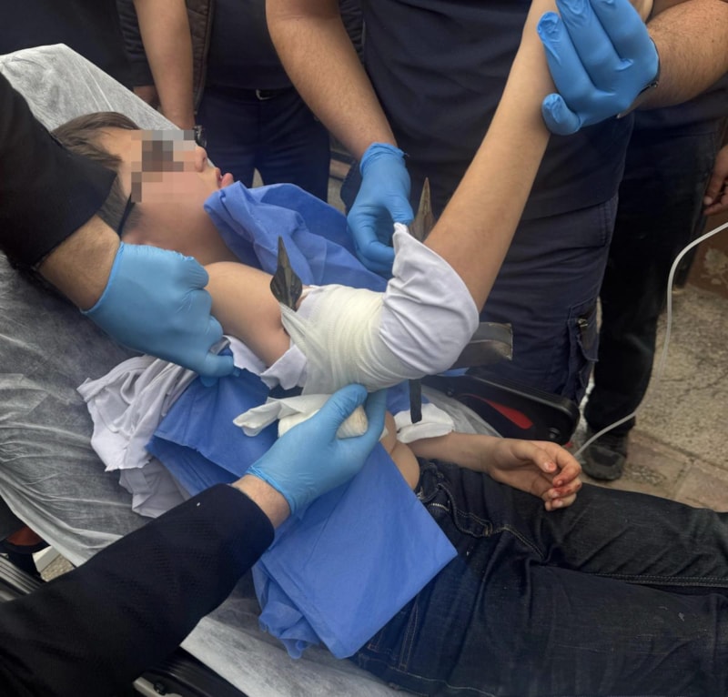 Küçük çocuk, kolunda kalan demir parçasının çıkarılması için olay yerine gelen 112 Acil Servis ekiplerince hastaneye kaldırıldı.