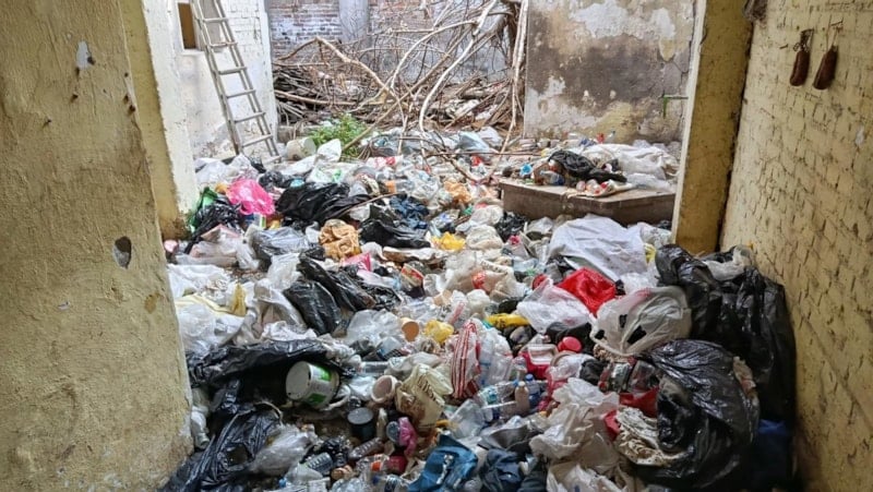 TEK BAŞINA YAŞADIĞI EVDEN 2 KAMYONET DOLUSU ÇÖP ÇIKARILDI
