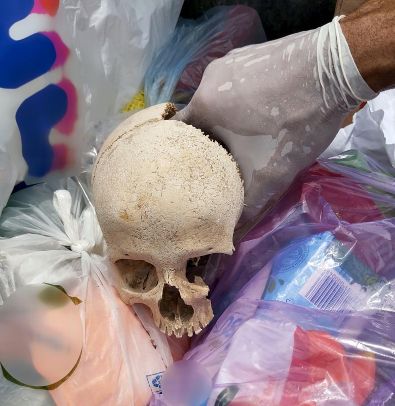 Mahallede büyük endişeye yol açan olayın ardından, çöplerin hangi noktadan geldiği ve kafatasının kim ya da kimler tarafından konteynere bırakıldığı araştırılıyor.