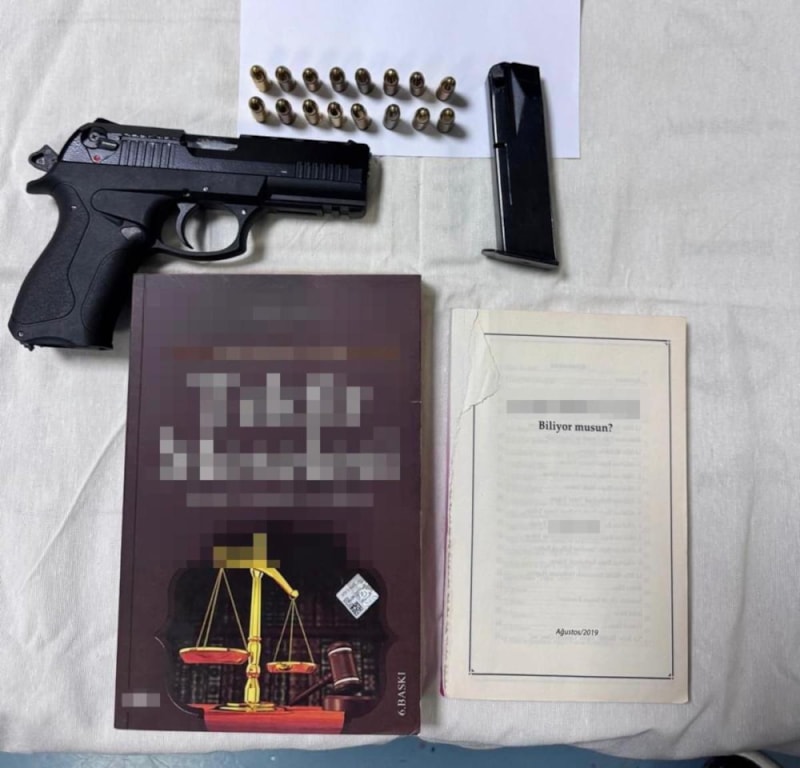 Yapılan aramalarda 1 adet ruhsatsız tabanca, 16 mermi, çok sayıda yasaklı kitap ve dijital materyal bulundu.