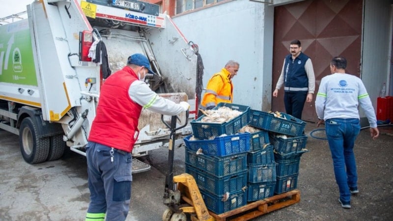 Ekipler, hijyen dışı şartlarda istiflenmiş karkas tavukları çevre ve insan sağlığına zarar vermemesi için özel prosedürle imha etti.