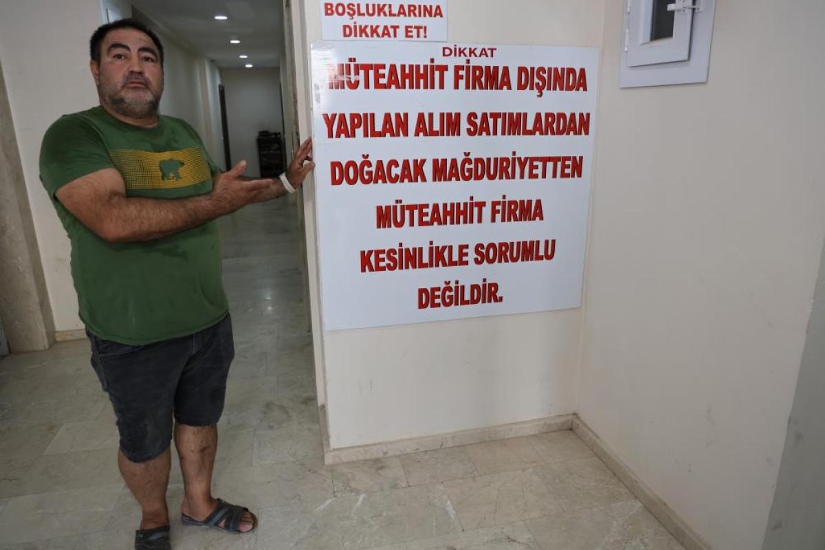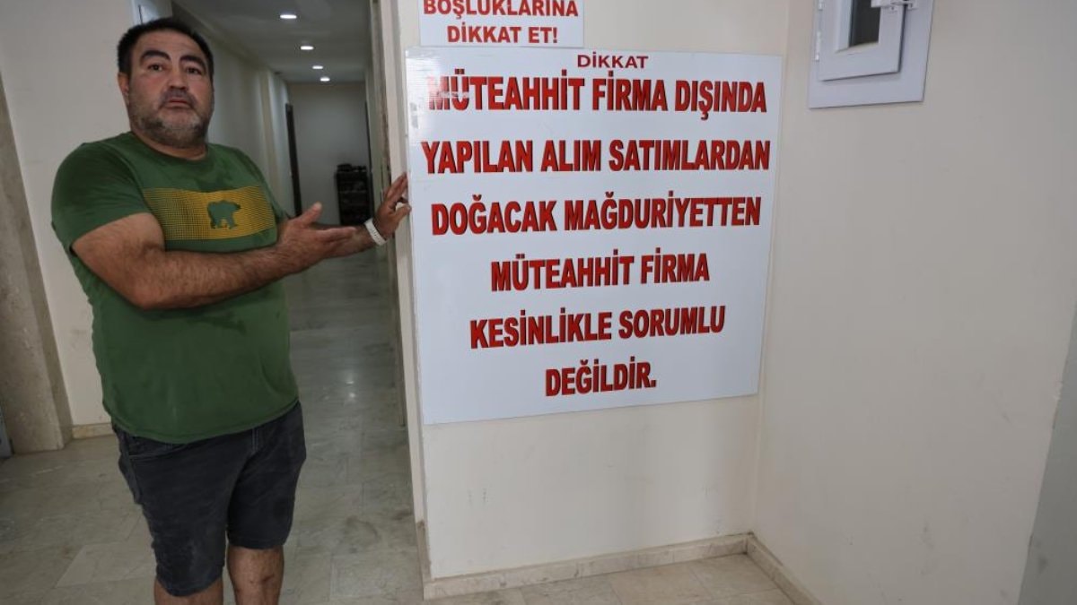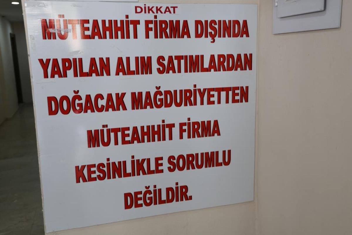Bu şekilde dolandırıldığını öne süren Kapan, geçtiğimiz ay dairesinin kapısına duvar örerken bu kez de mahkemeye intikal eden olay nedeniyle binasının girişine 'Müteahhit firma dışında yapılan alım satımlardan doğacak mağduriyetten müteahhit firma kesinlikle sorumlu değildir' yazısı astı.