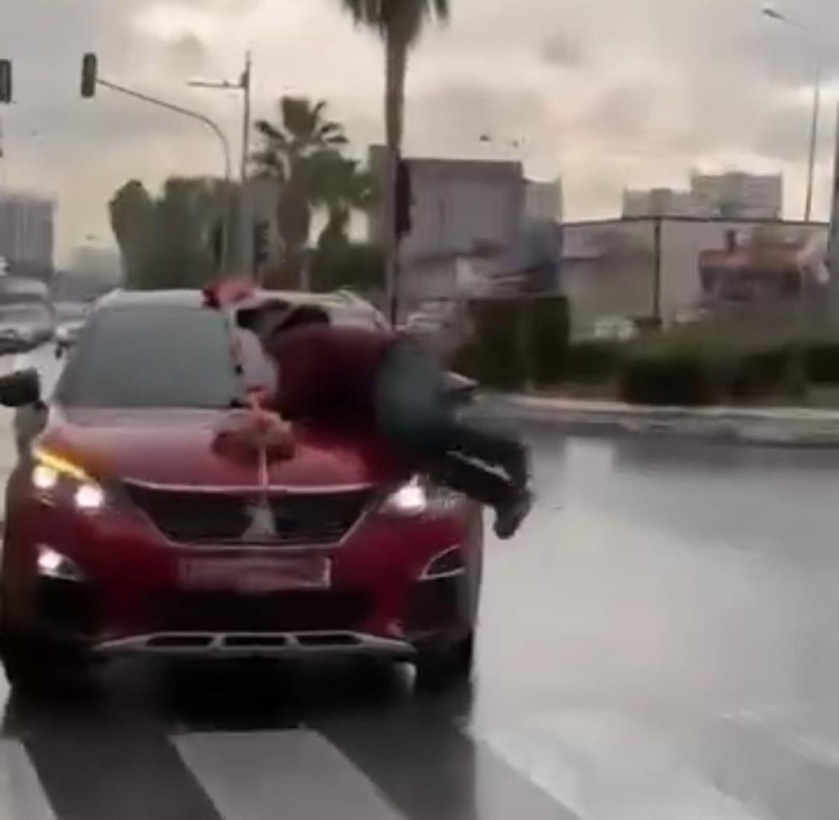 Adana’nın Yüreğir ilçesi Karataş Caddesi’nde, ilginç ve üzücü bir olay yaşandı. Düğün konvoyu ilerlerken, bir dilenci yolda gördüğü gelin arabasının kaputuna atladı. Hareket halindeki aracın durdurulmasını isteyen dilenci, para alana kadar inmemekte ısrar etti.