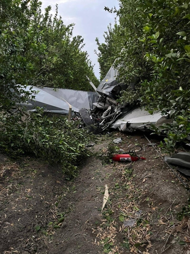 Öte yandan İl Jandarma Komutanlığı ekipleri, Kelaynak Pisti'nin yakınındaki narenciye bahçesine düşen eğitim uçağında inceleme yaptı.