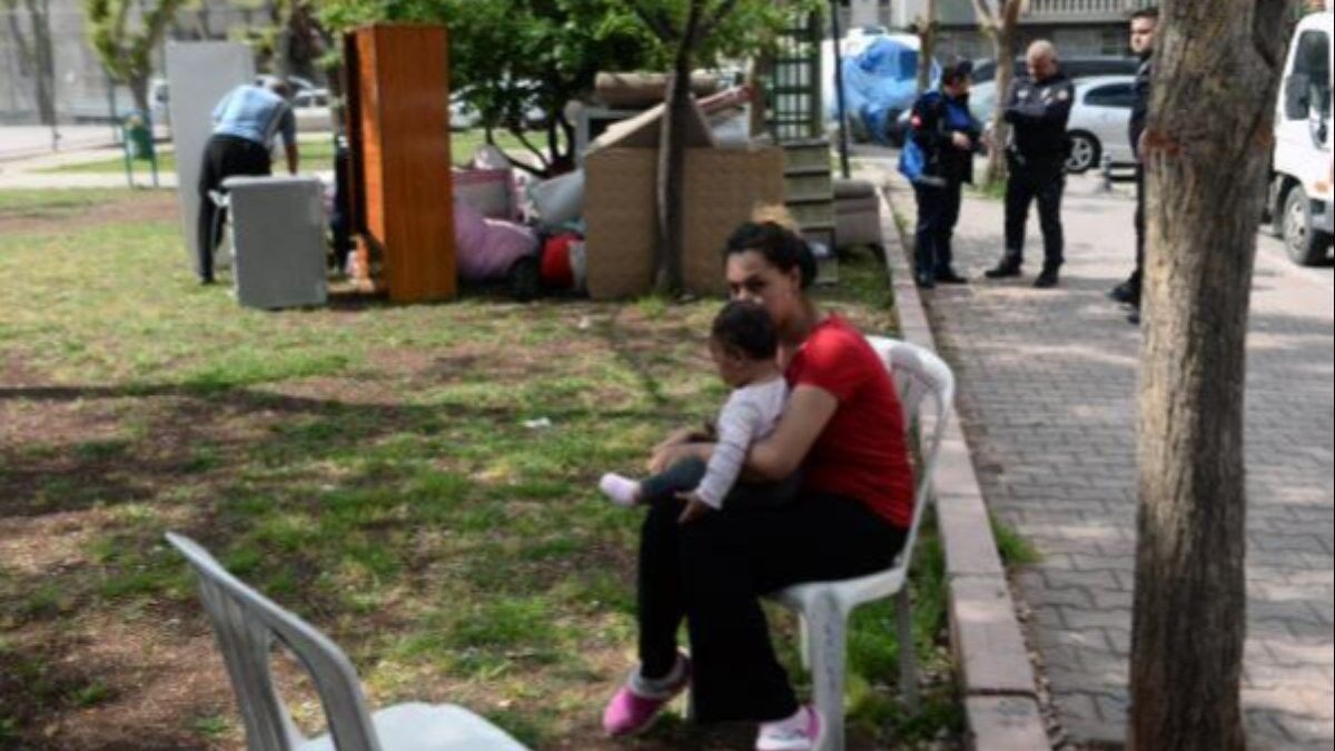 Adana’da, evden çıkarılan çift bebekleri ile parkta kaldı VİDEO