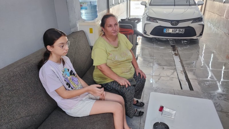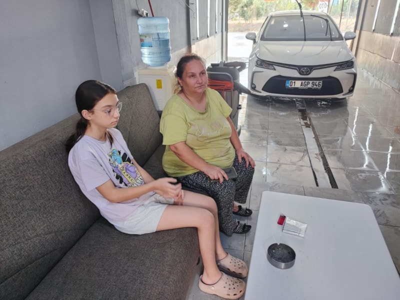 Adana'da elektrik kontağından çıkan yangın nedeniyle evleri yanan anne Hatice Aycan ve kızı Nehir Tunalı, kalacak bir yerleri olmadığı için oto yıkamacıda yaşamaya başladı.