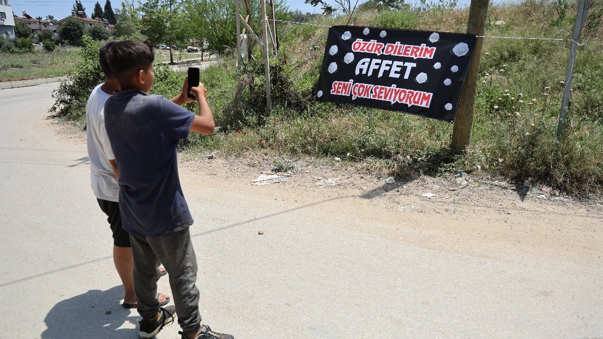 Bir ara sokağa, üzerinde "Özür dilerim affet seni çok seviyorum" yazılı ilan asıldı.