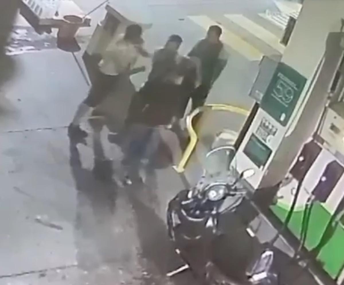2 saldırganın görevliyi darbettiği anlar benzin istasyonunda bulunan güvenlik kameralarına yansıdı.