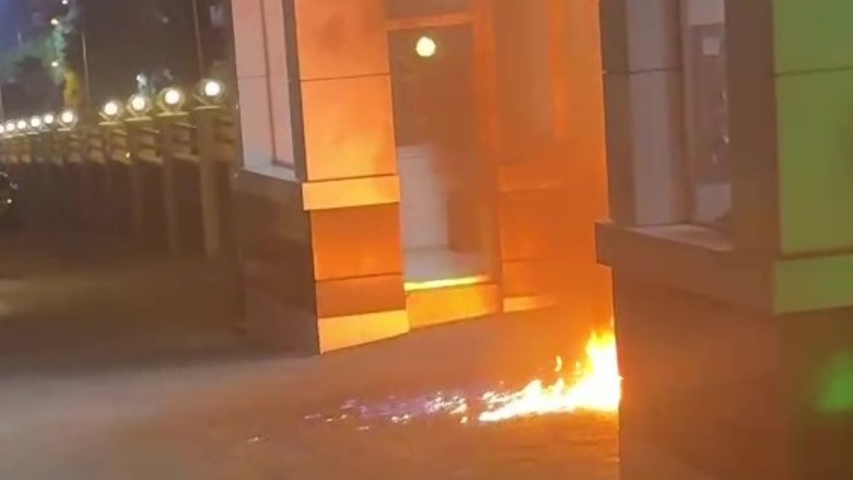 Yere benzin döküp ateşe veren kimliği belirsiz şüpheli, ismini söylediği bir kişinin dışarı çıkmasını istedi. Tabancasını kadın güvenlik görevlisine doğrultan şüpheli, kişiyi çağırmasını söyledi.