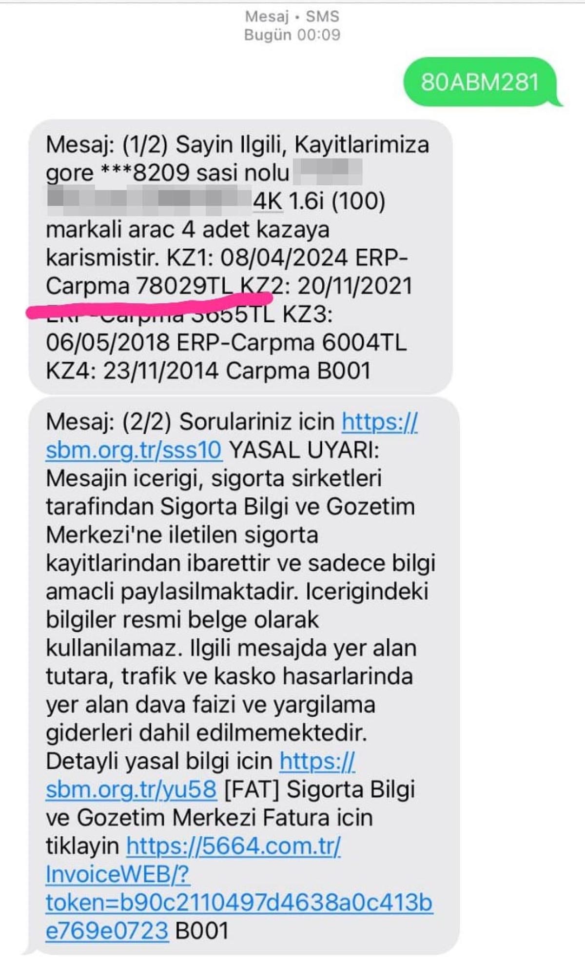 Tamirat işlemlerinin ardından Tiken'in aracına 78 bin 29 TL hasar kaydı işlendi ve buna karşılık 18 bin 383 TL 'değer kaybı' ödendi.