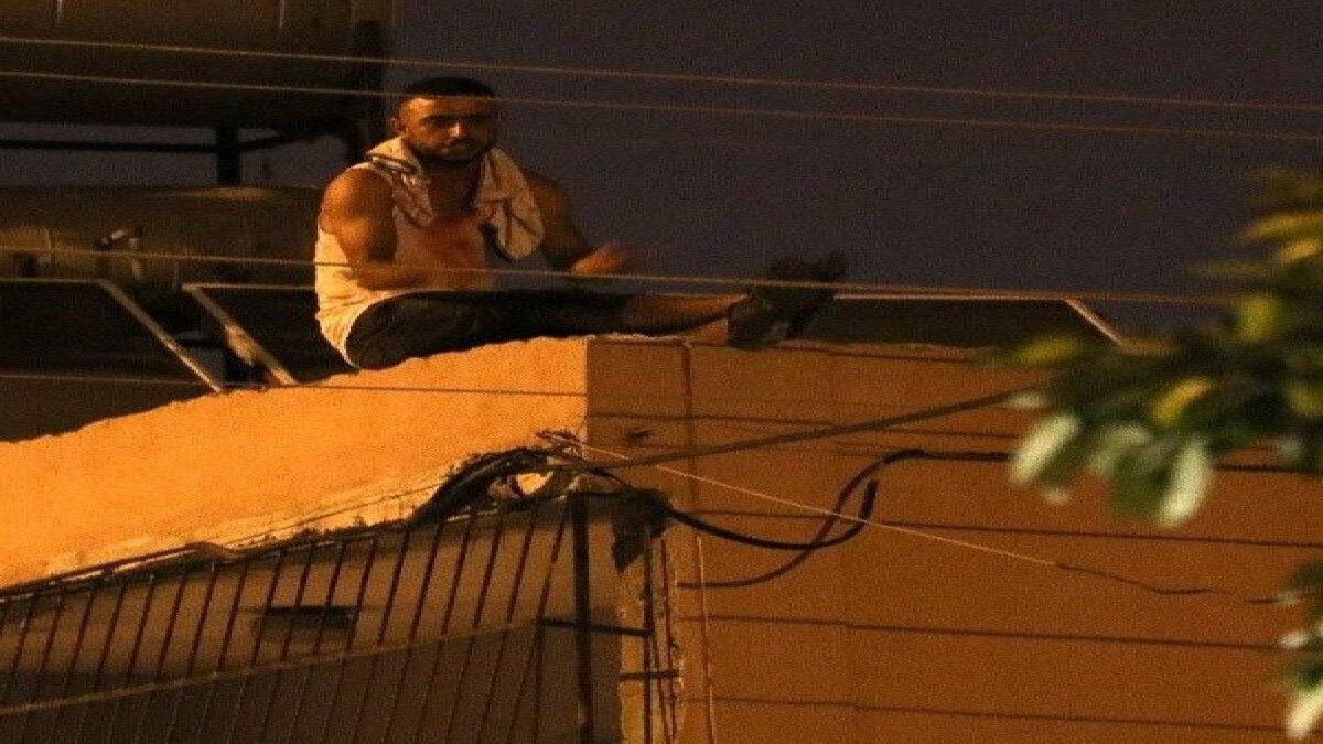 Sürekli tehditler savurup husumetlilerine küfür eden H.K.’nın damın kenarındaki duvara oturup sigara içmesi de dikkat çekti.