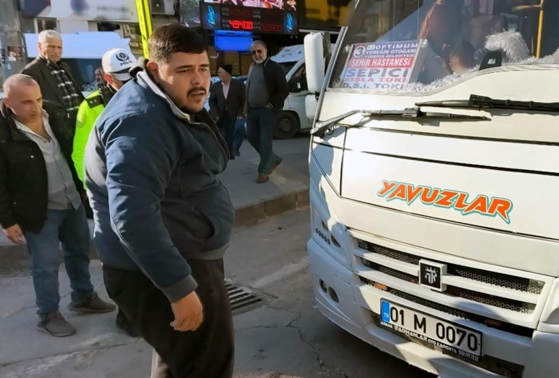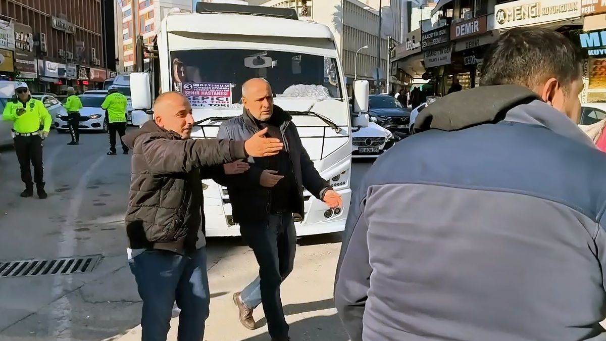Bu sırada araçtan inen yolculardan biri, "Başka bir araç sıkıştırınca mecburen kornaya bastı. Dolmuş kaldırıma çıkacaktı." diyerek sürücüyü savundu.