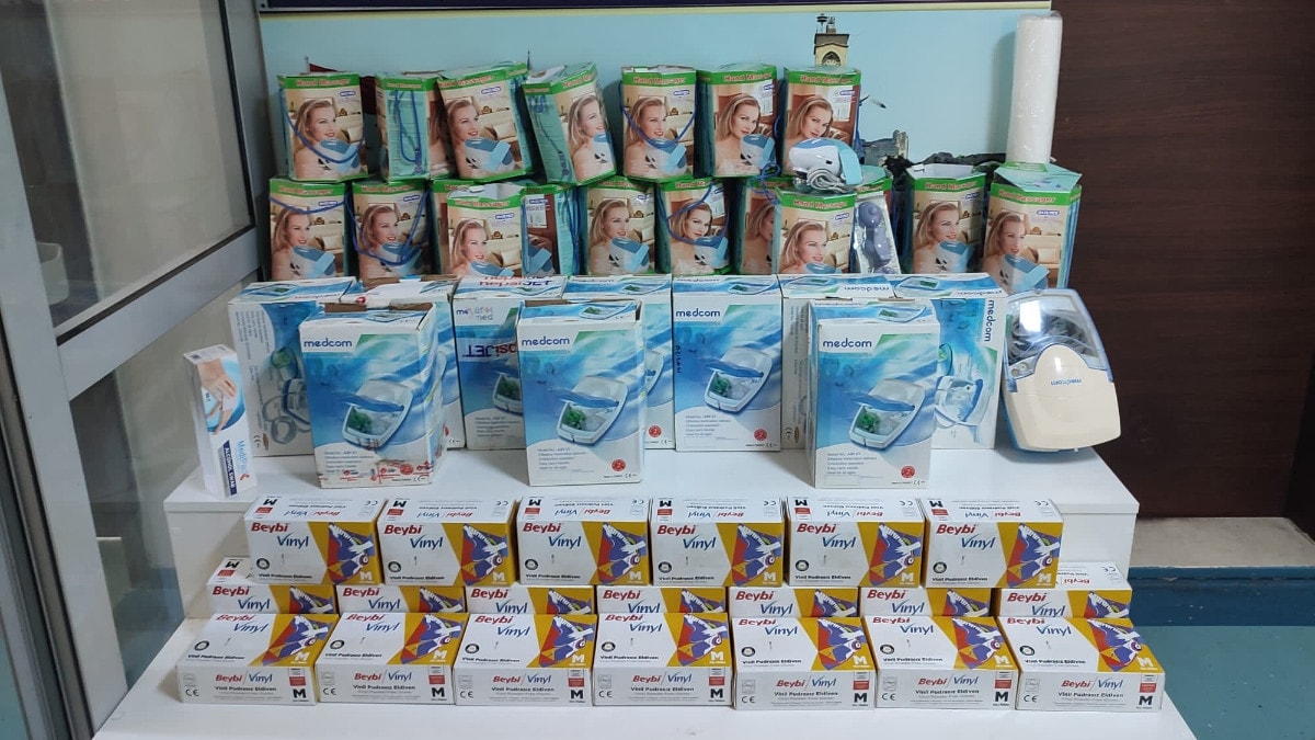 Şüpheliler; iş yerindeki 5 bin paket eldiven, 150 adet ateş ölçer, 240 paket hasta bezi, 600 adet antiseptik solüsyon, 800 adet idrar sondası gibi 250 bin lira değerinde medikal ürün çaldı.