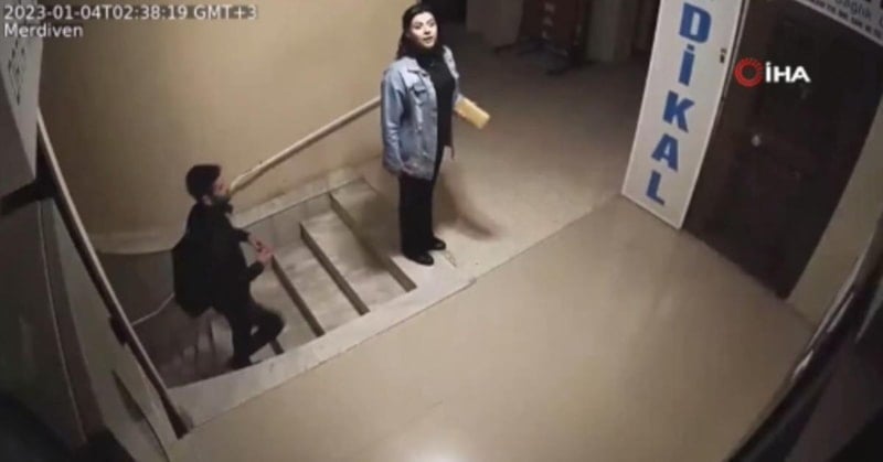 O anlar ise iş yerinin güvenlik kamerasına yansıdı.