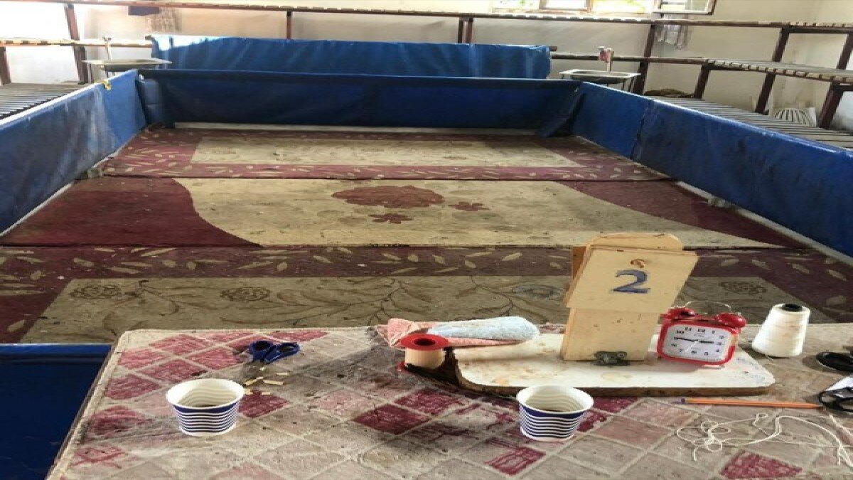 Mekanda, horoz dövüşü için kullanılan seyirci tribünü, horozlar için saha, horoz koymak için kafesler ile hakem masası ve sandalye ele geçirildi.