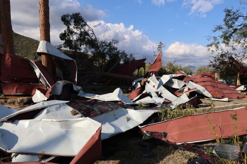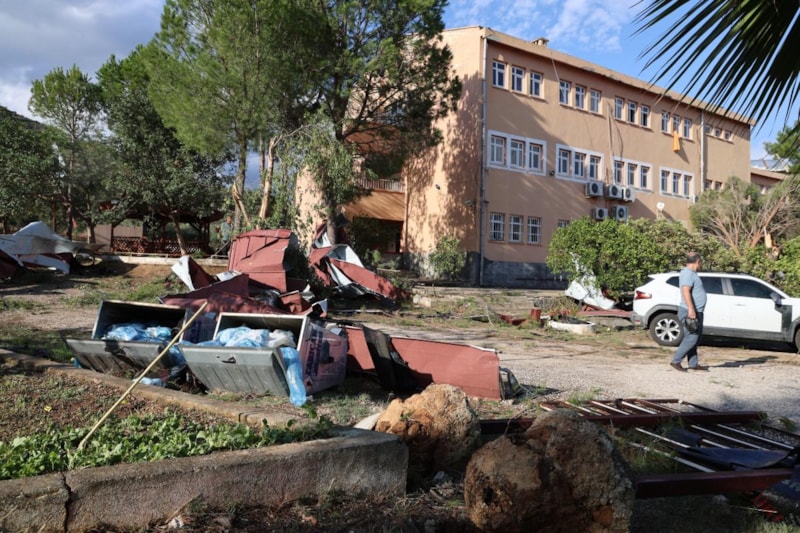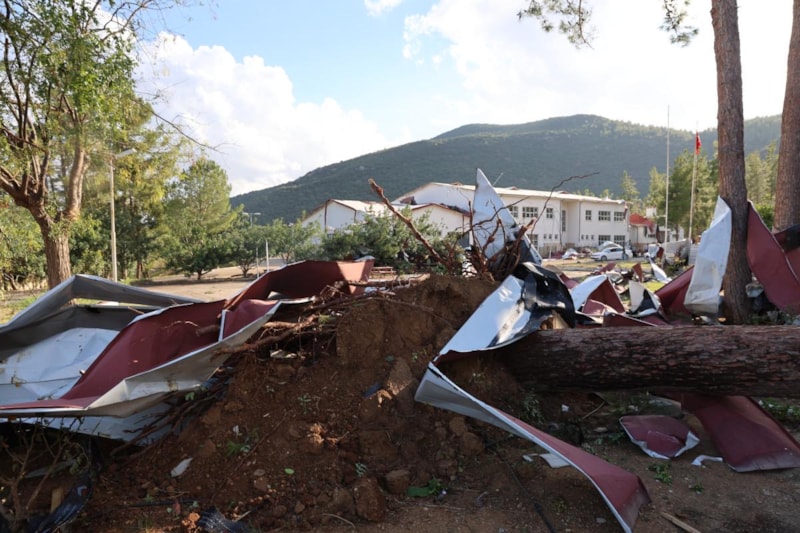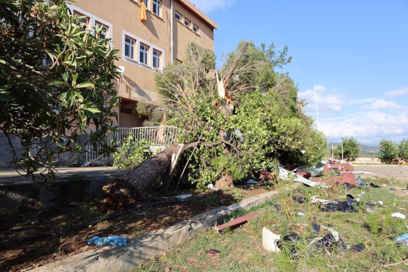 “Yemekhaneden çıkacaktık, çocukları dışarı çıkarmadık. Bir anda çamlar devrildi, çatı parçaları uçuştu” dedi.