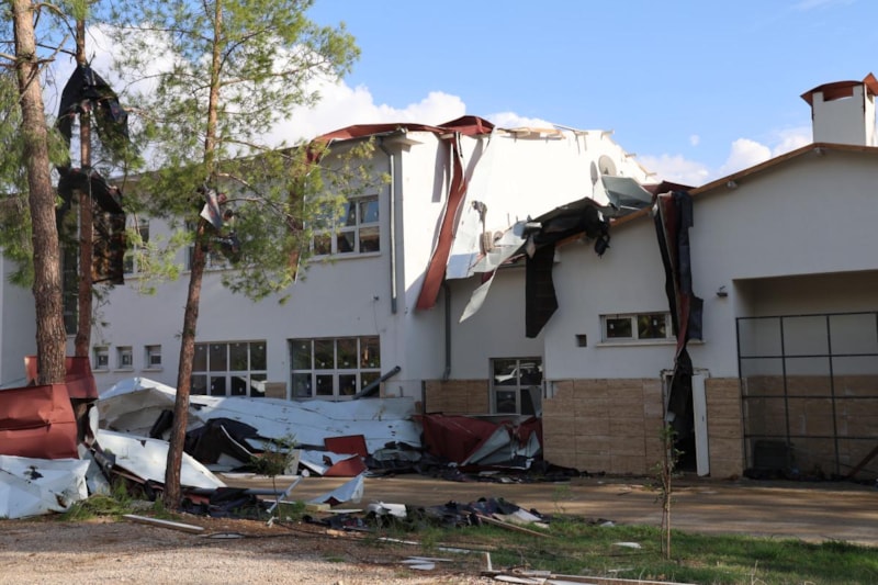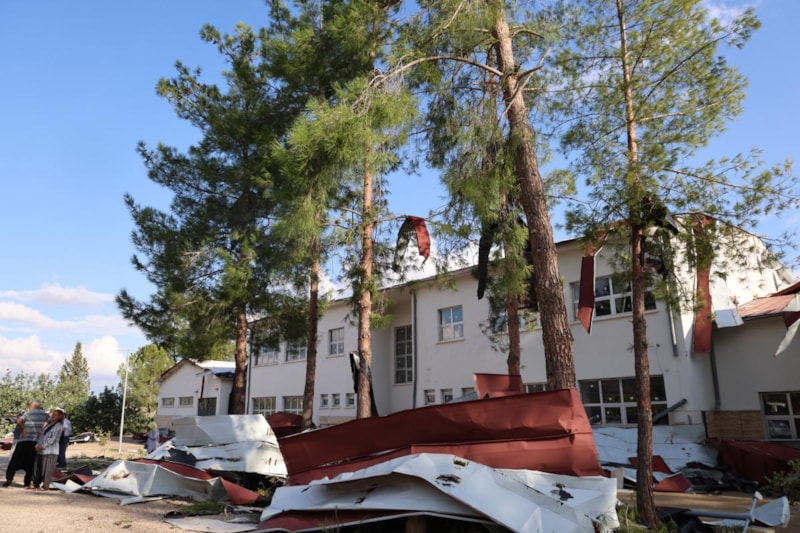 ÖĞRENCİLER OKULDAYKEN HORTUM ÇATIYI UÇURDU