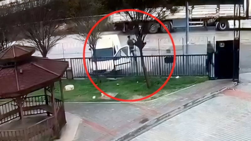 Saldırıdan kaçmak için aracın arkasına saklanmaya çalışan baba ile oğlu, kurşunların hedefi oldu. Ali E. kaçarken, saldırı anı ise sitenin güvenlik kamerasına yansıdı.