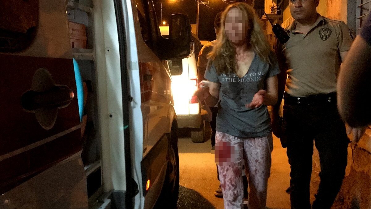 Boynundan ve elinden yaralanan Naime E., buradan kaçarak aynı mahallede bir tanıdığının evine sığındı.