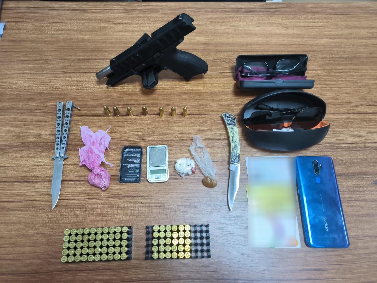 Evde yapılan arama çalışmalarında olayda kullanılan tabanca ve çaldıkları gözlük, cep telefonu ile şahsın kimliği ve kredi kartları ele geçirildi.