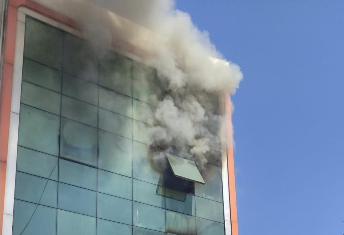 Binanın 2'nci katında çıkan yangın kısa sürede tüm binayı sararken çalışanlar, kendilerini sokağa attı.