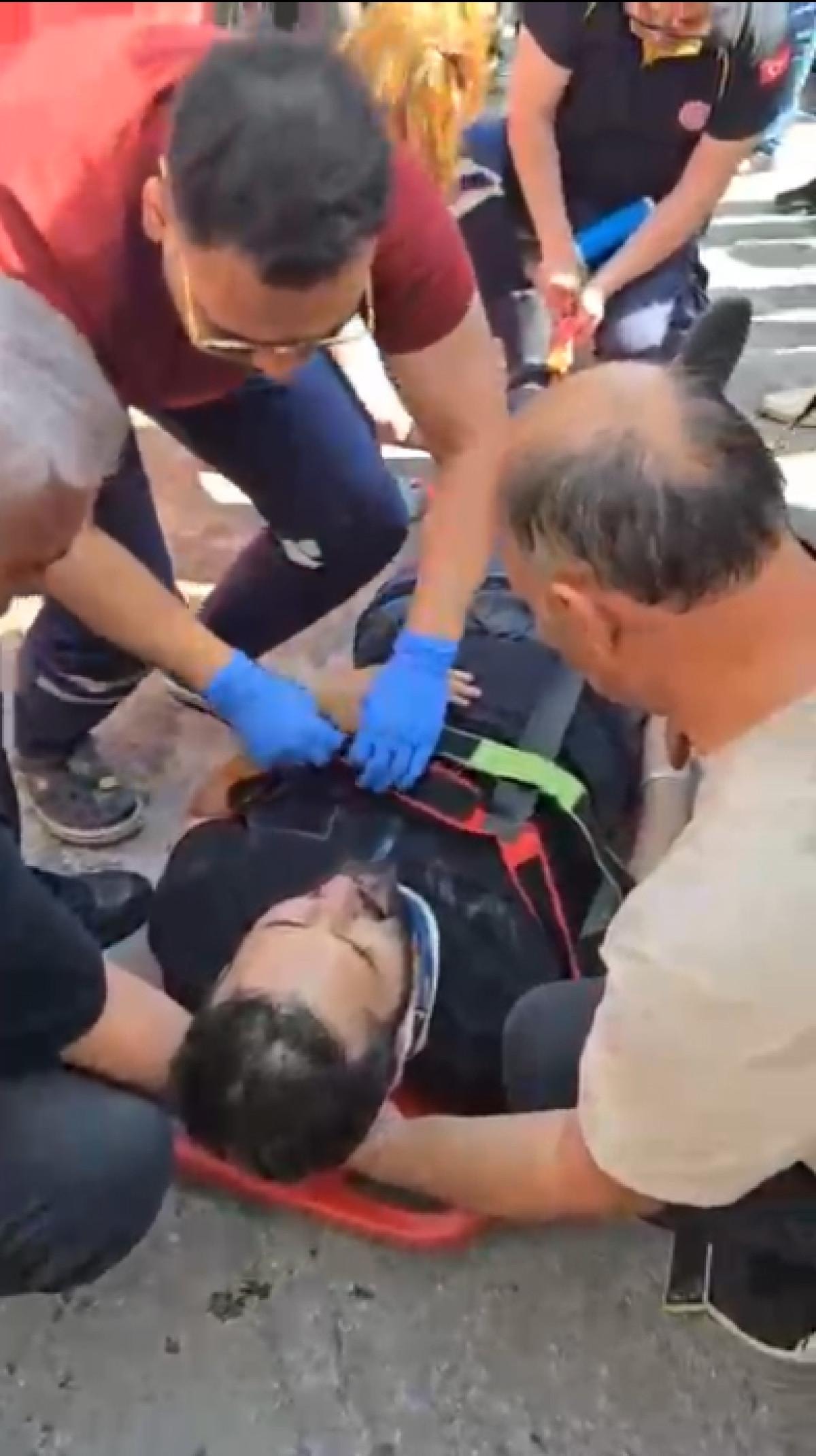 Bir kişi de sırtına aldığı süngeri binanın altına yetiştirmeye çalıştı ancak dumandan etkilenen işçi, kendini boşluğa bıraktı.