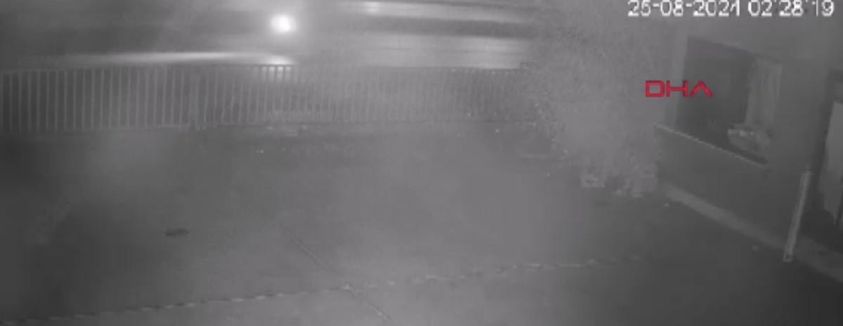 O sırada kulübede bulunan güvenlik görevlisi, polise ihbarda bulundu. Saldırı ise iş yerinin güvenlik kamerasına yansıdı.