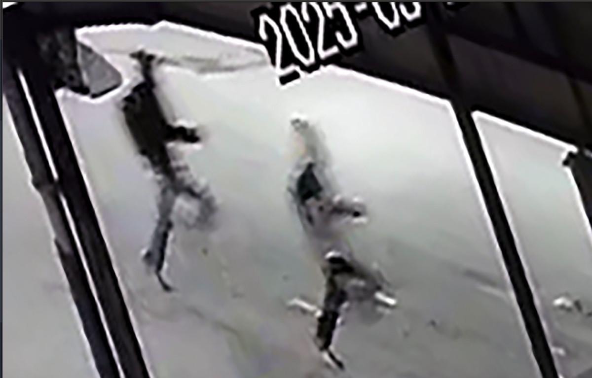 Şüpheliler koşarak kaçarken o anlar, başka bir iş yerinin güvenlik kamerasına yansıdı.