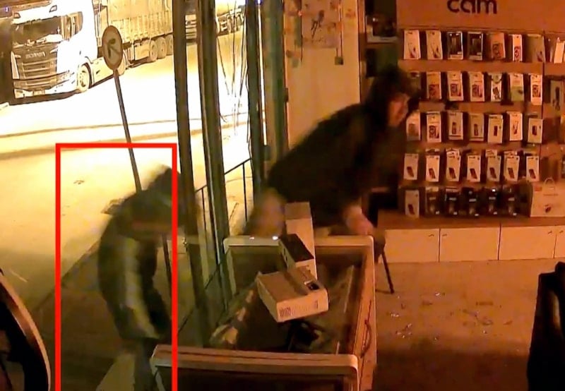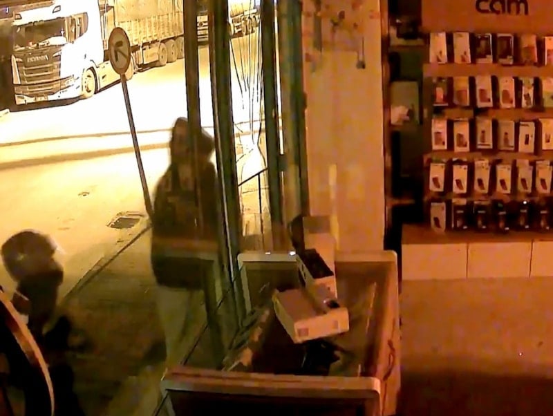 Yüzlerini kapüşon ve motosiklet kaskıyla gizleyip, girdikleri iş yerinin vitrin camlarını kaldırım taşıyla kıran Serhat Can Z. ile A.A., 3 cep telefonu, 3 akıllı saat, tablet ve 3 kablosuz kulaklık çaldı.