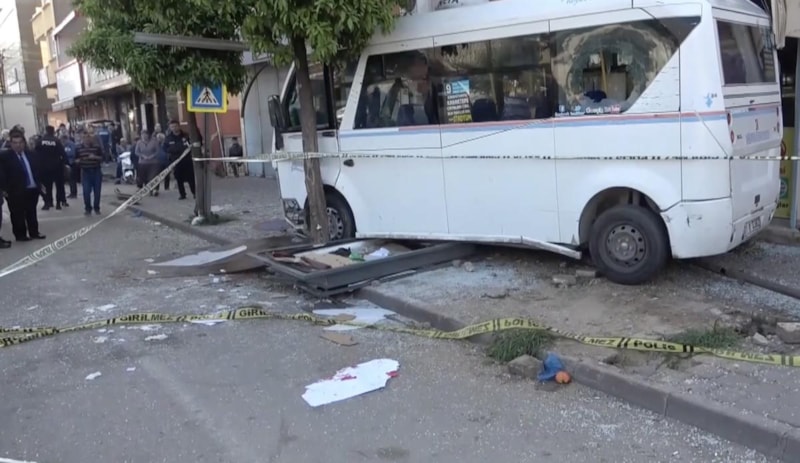 Adana'nın Yüreğir ilçesinde Yusuf Küsen'in kullandığı dolmuş, kontrolden çıkarak çok sayıda kişinin beklediği otobüs durağına daldı.