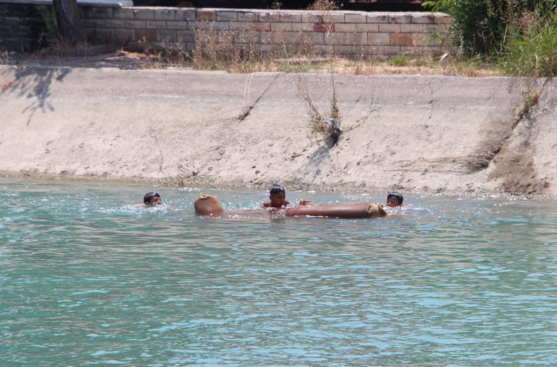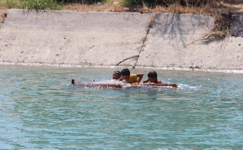 Yüksek nemin etkisiyle özellikle öğle saatlerinde hissedilen sıcaklığın 40 dereceleri aştığı kentte bazı gençler ve çocuklar, her yaz onlarca kişinin ölümüne neden olan ve yetkililerin sık sık uyarılarda bulunup, girilmemesi yönünde afişler astığı sulama kanallarında serinledi.