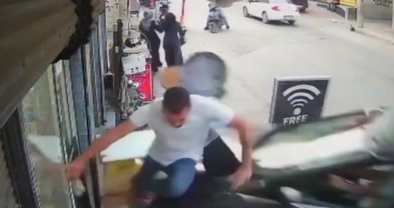 Olay anı, çevredeki bir iş yerinin güvenlik kamerası tarafından saniye saniye kaydedildi.
