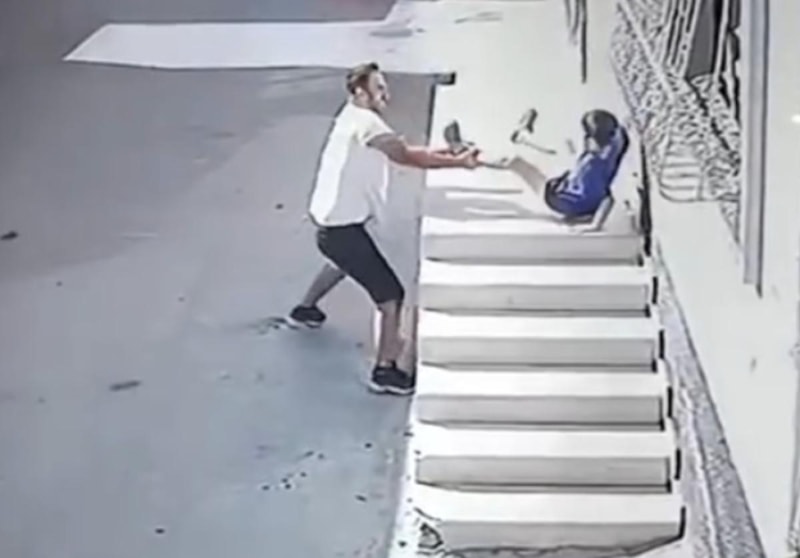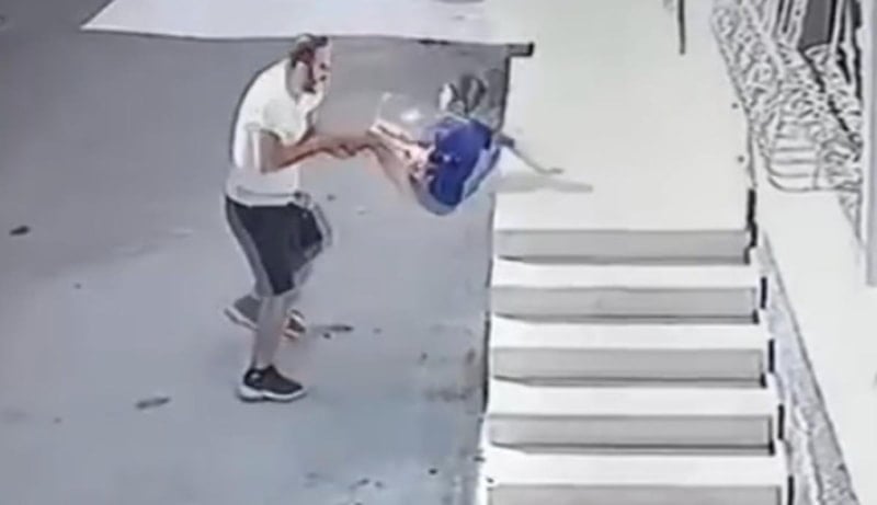 Takip eden kişi, yakaladığı çocuğun ayak bileğinden tutup, başına tokat attıktan sonra savurarak 1,5 metre yükseklikten yere fırlattı.