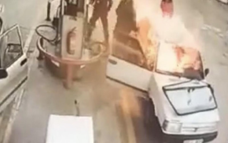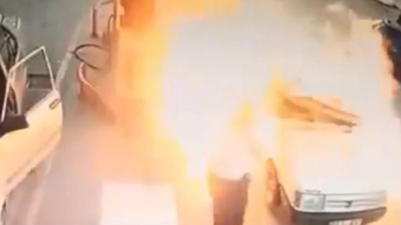 Adana'da bir akaryakıt istasyonunda LPG dolumu yapılan otomobilin bomba gibi patladığı anlar kameraya yansıdı.