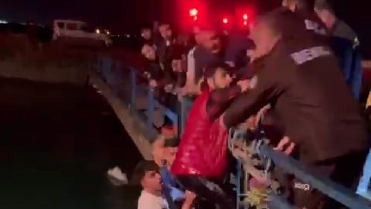 Minibüste bulunan 4 kişiden 2'si aracın üzerine çıkıp, sulama kanalının köprü ayaklarına tutunarak, yardım istedi.
