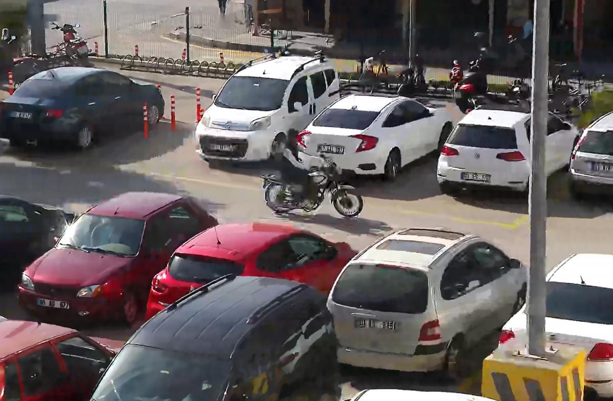 Hakan D., motosikletle otoparktan çıktığı sırada güvenlik görevlileri tarafından suçüstü yakalandı.