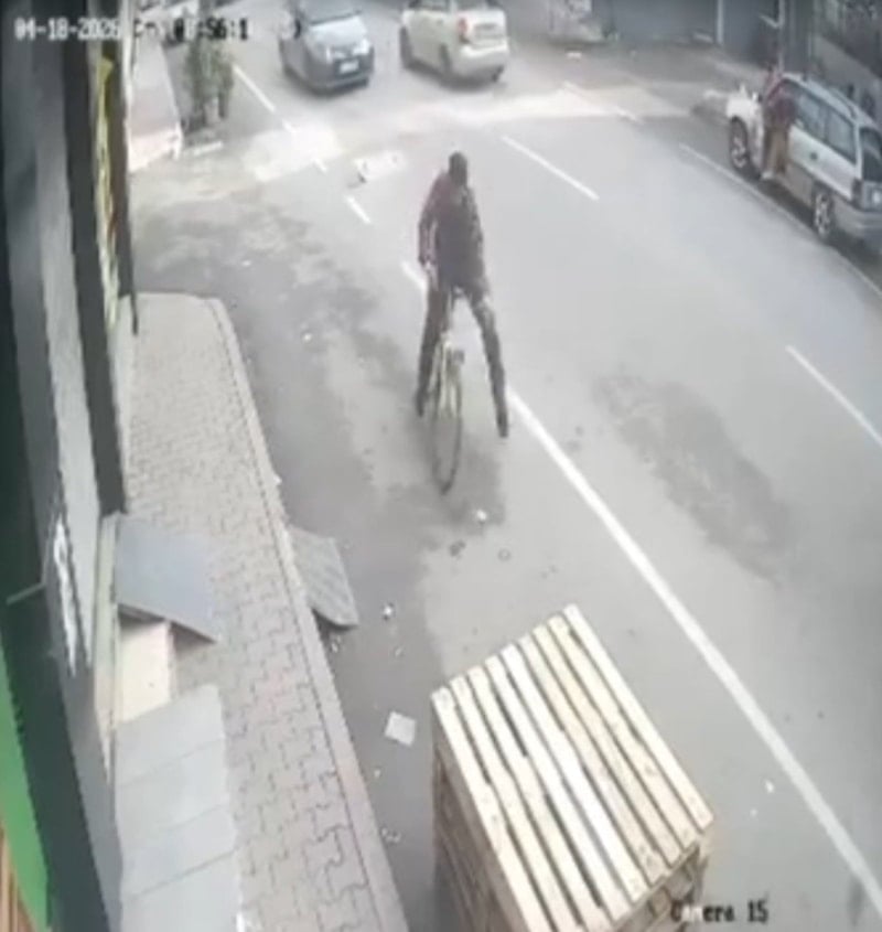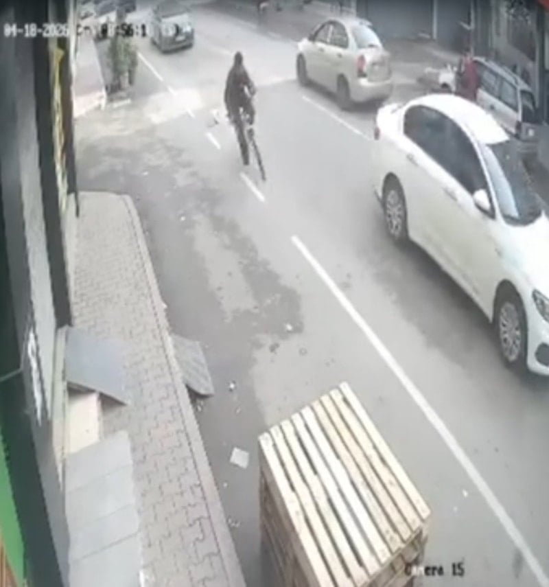 Çevredekilerin ihbarıyla adrese sevk edilen sağlık ekipleri, yaralanan bisikletliyi ambulansla hastaneye kaldırdı. Kaza, bir iş yerinin güvenlik kamerasına yansıdı.