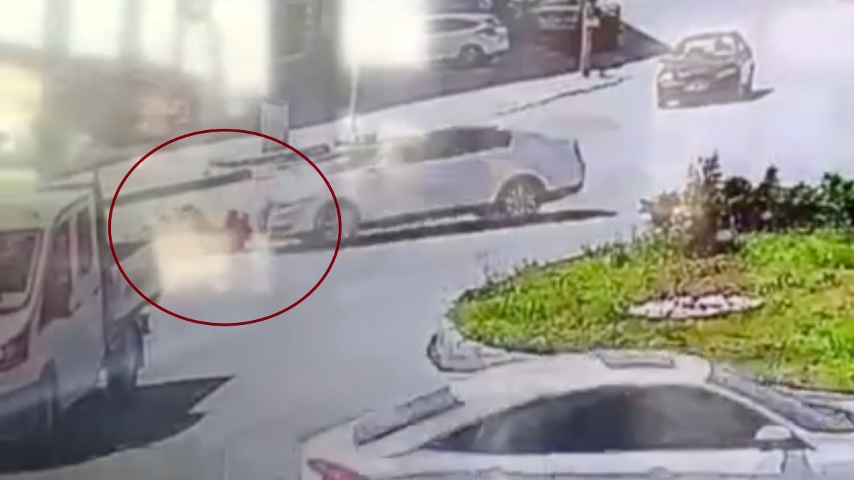 Güvenlik kamerasında motosikletin devrildiği ve otomobilin motosikletin üstünden geçtiği görüldü.