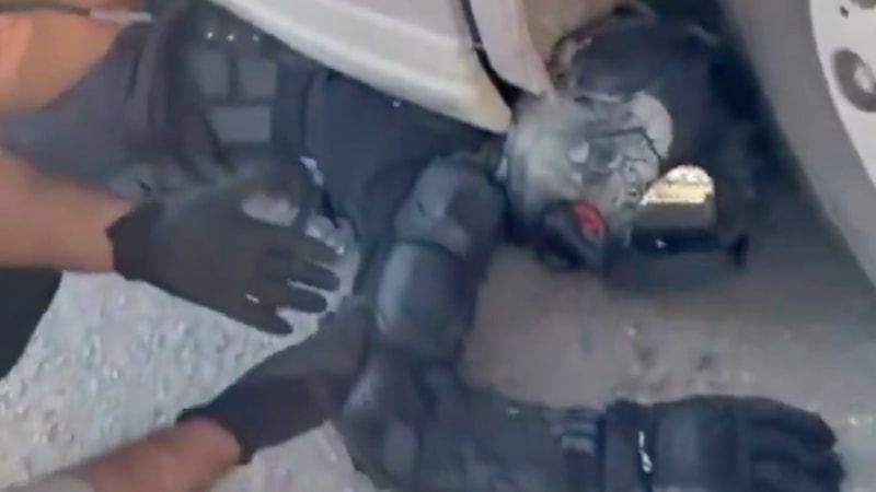 Kentte tır ile çarpışan motosiklet sürücüsü, aracın altında kaldı. Sıkıştığı yerden olay yerine gelen ekipler tarafından kurtarılan sürücü, feci kazayı ekipmanları sayesinde hafif yaralı şekilde atlatırken o anlar, cep telefonu kamerasıyla görüntülendi.