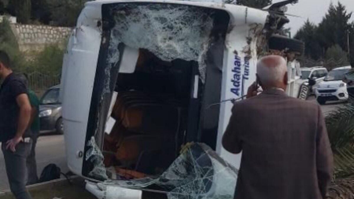 Kaza anında refüjdeki palmiye ağaçlarına çarptıktan sonra devrilen servisin sürücüsü ile 14 öğrenci ve 4 öğretmen yaralandı.