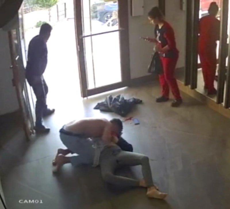 Bu sırada Günay Sena Sert yere düşerken, İbrahim Sert ise üzerindeki tişörtü çıkarıp, eşinin yarasına tampon yaptı.