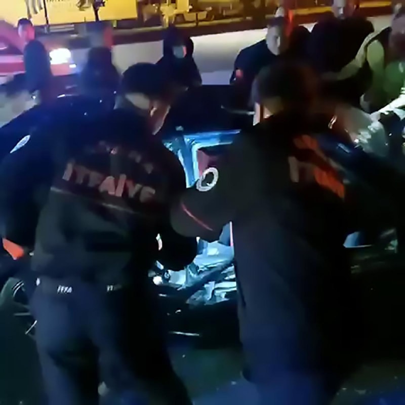 Hurdaya dönen otomobilde sıkışan Taşdemir, itfaiye ekipleri tarafından araçtan çıkarıldı.