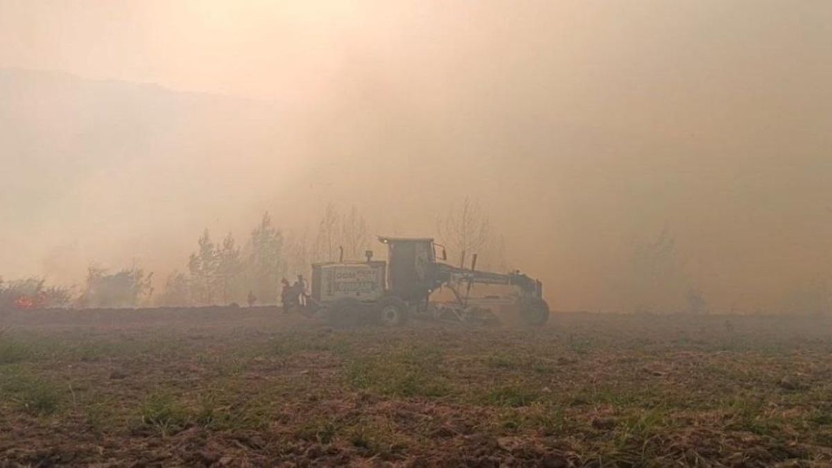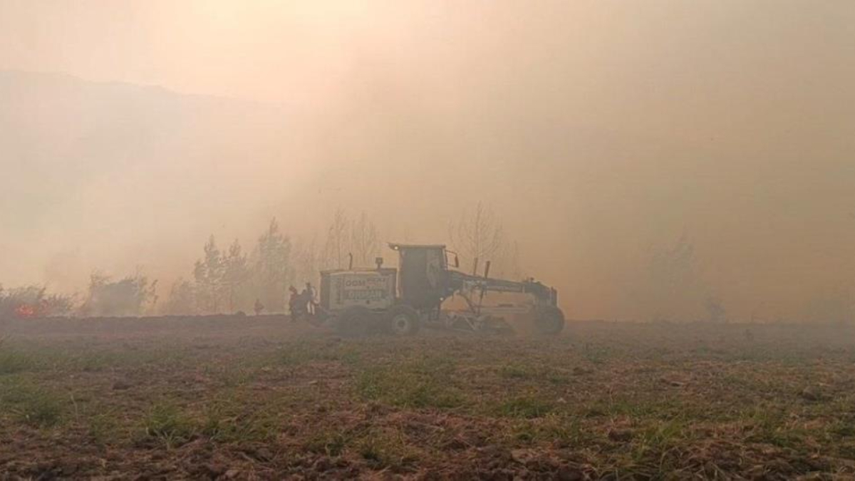 Kozan İlçe Jandarma ekipleri mahalledeki 10 evi tahliye ederken bir vatandaş, yangının evlere sıçramaması için tarlasını sürerek müdahaleye destek verdi.