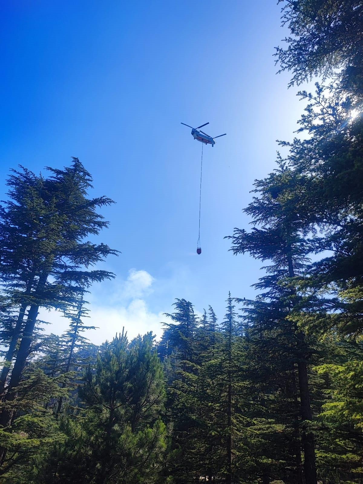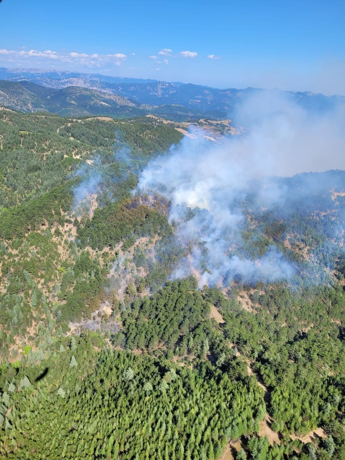 Yangına havadan ve karadan müdahale başlandı. Yangını söndürmek için ekiplerin çalışması devam ediyor.