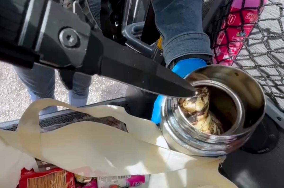 Yolculardan Metin Y.’nin, yanında taşıdığı bez çantadaki çelik termosa gizlenmiş, 500 gram bonzai ham maddesi ele geçirildi.