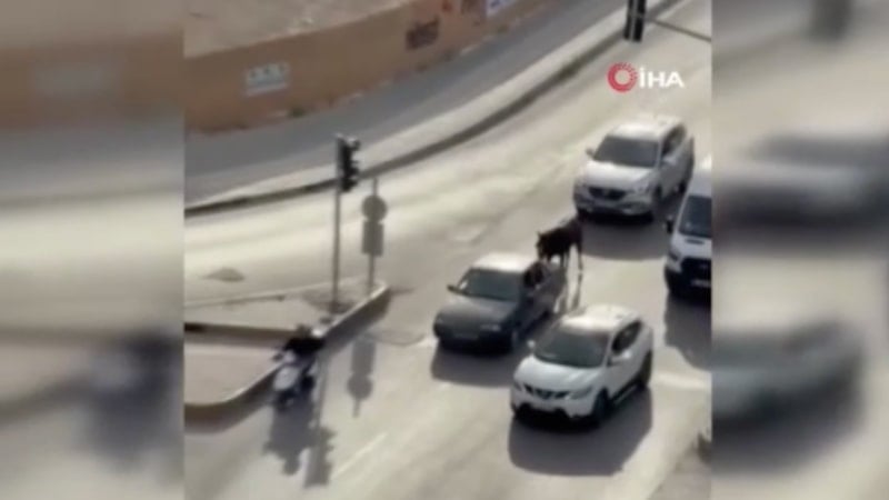 Çukurova ilçesinde Bir atı otomobilin arkasına bağlayarak trafikte seyreden sürücü ve hayvanın sahibi çıkarıldığı mahkemece tutuklandı.