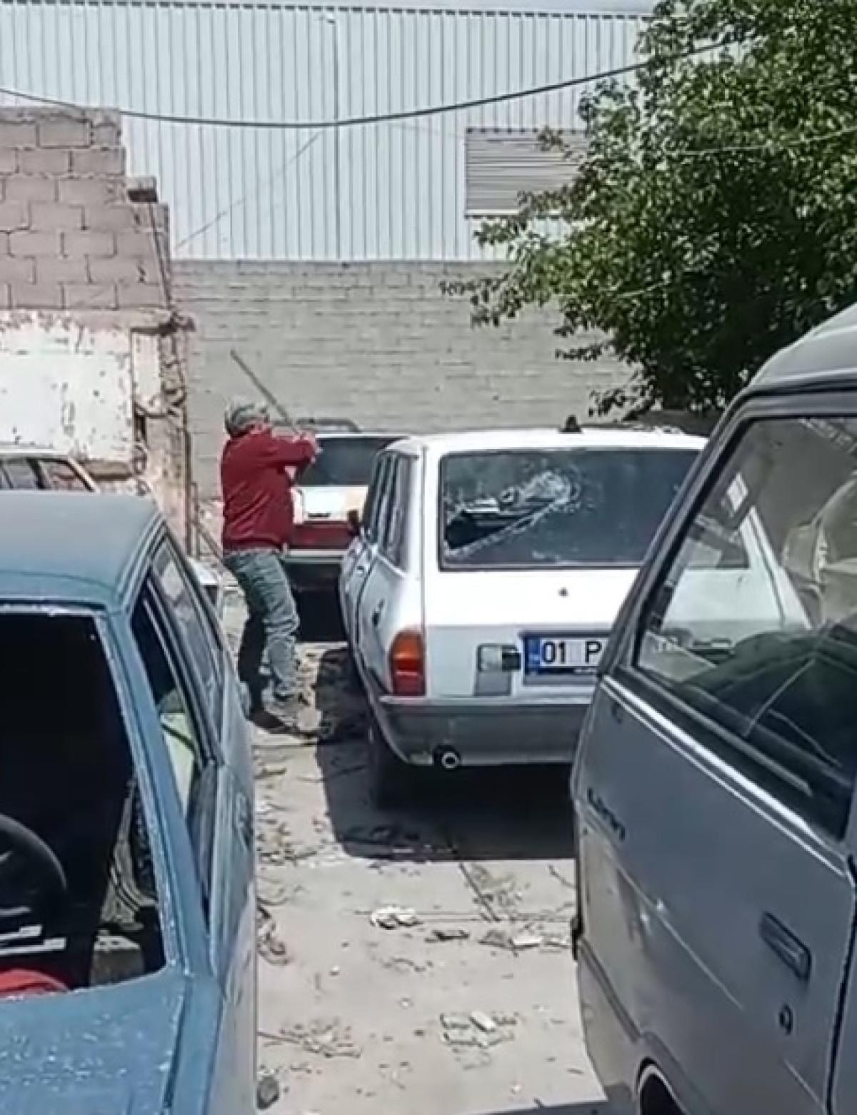 Eline aldığı sopayla otoparktaki otomobilinin camlarını kırıp, kaportasına zarar veren Veysi Ç., kendisine esnafı öneren arkadaşlarına da tepki gösterdi.