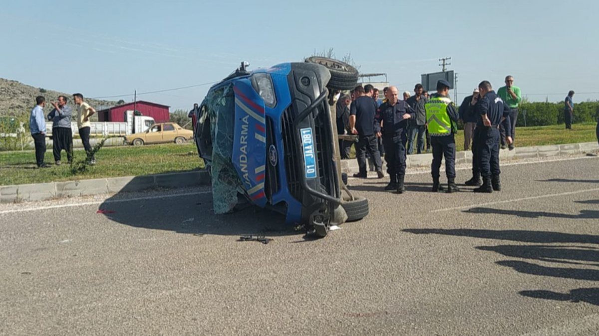 Adana'nın Kozan ilesinde, jandarma taşıyan servis kazaya karıştı.