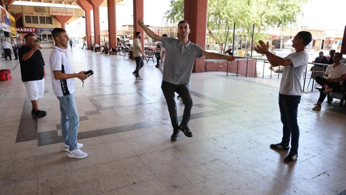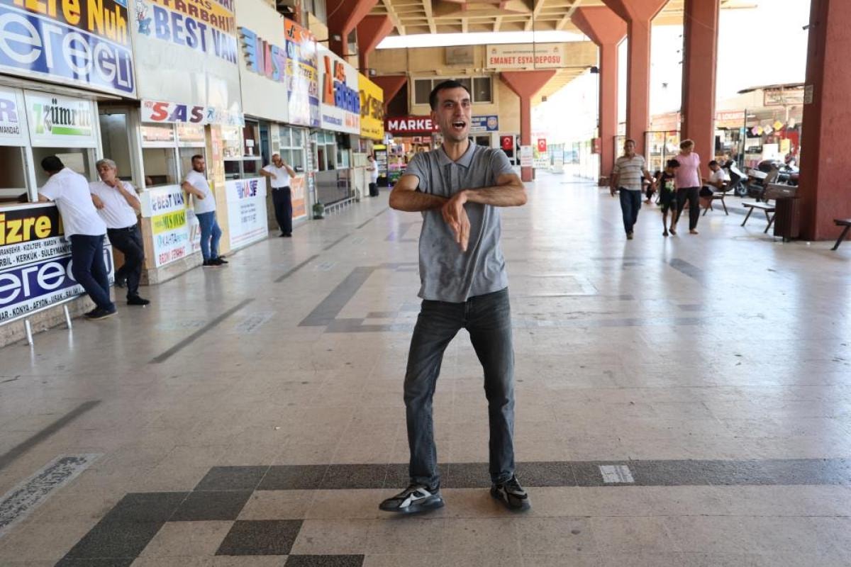 Adana Otogarı'ndaki bir yazıhanede çalışan 25 yaşındaki Ferit Özer, müzik duyduğunda oynamasıyla dikkat çekiyor.